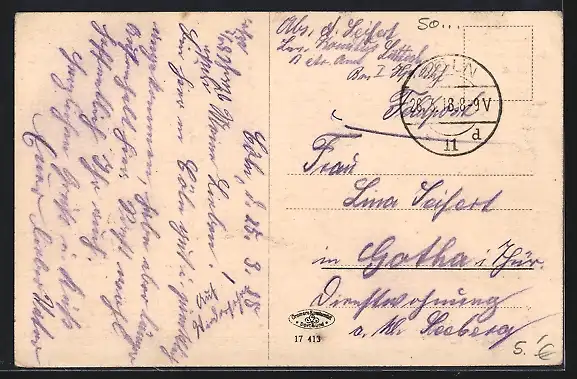 gelaufen 1918, guter Zustand
