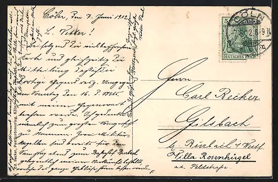 alte Ansichtskarte, gelaufen 1912, guter Zustand