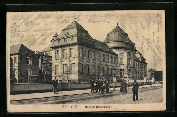 AK Köln-Neustadt, Handelshochschule mit Studentengruppe auf der Strasse