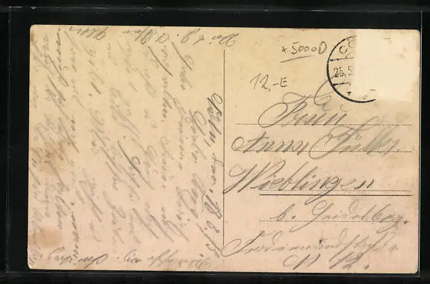 alte Ansichtskarte, gelaufen, Briefmarke entfernt, rückseitig Oberflächenschaden, guter Zustand
