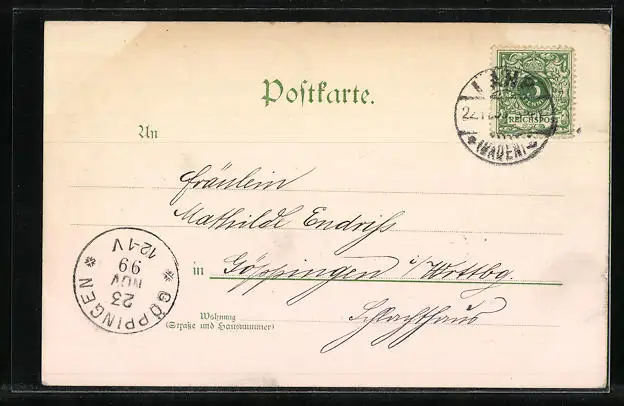 alte Ansichtskarte, gelaufen 1899, guter Zustand
