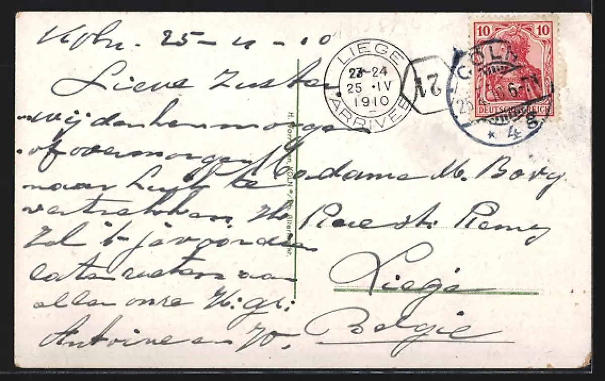 gelaufen 1910, Abriebspur unten links, Eckknick oben links, guter Zustand