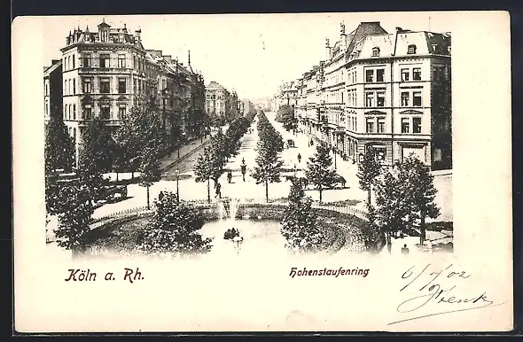 AK Köln-Neustadt, Hohenstaufenring mit Fontäne