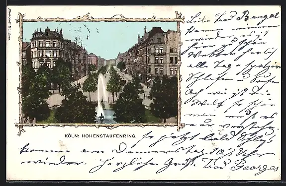 AK Köln-Neustadt, Hohenstaufenring mit Springbrunnen, Strassenpartie