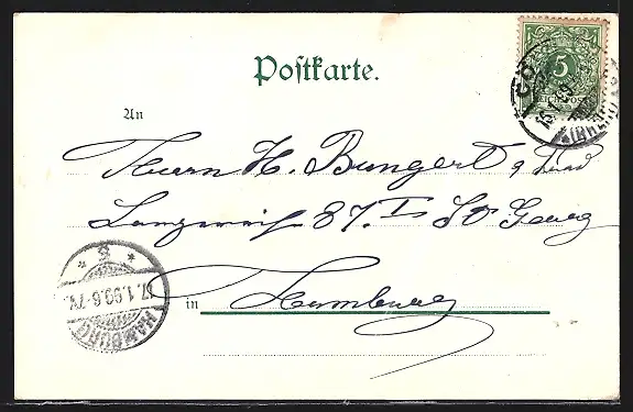 alte Ansichtskarte, gelaufen 1899, Stempelspur, guter Zustand