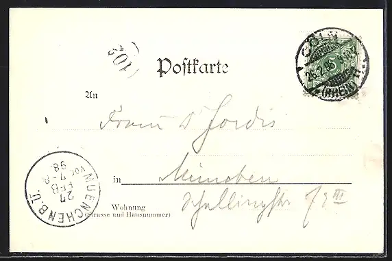 alte Ansichtskarte, gelaufen 1898, guter Zustand