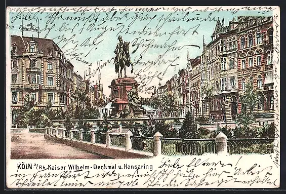 AK Köln-Neustadt, Kaiser Wilhelm-Denkmal und Hansaring