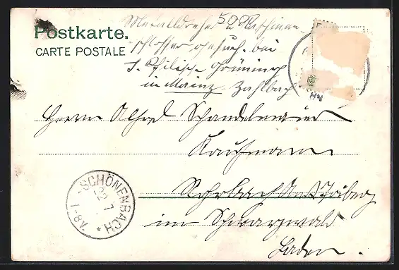 alte Ansichtskarte, gelaufen, Briefmarke entfernt, rückseitig Oberflächenschaden, guter Zustand