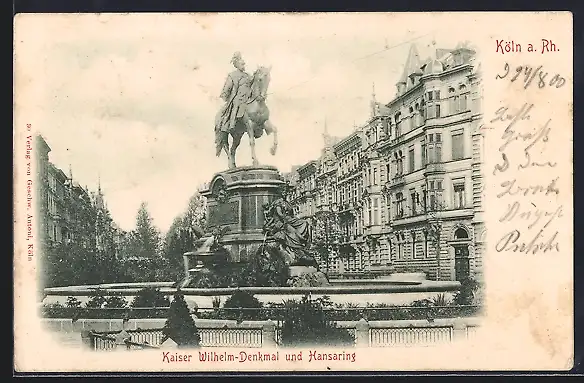 AK Köln-Neustadt, Kaiser Wilhelm-Denkmal und Hansaring