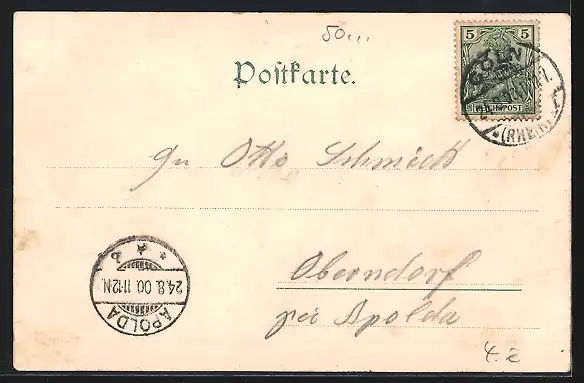 alte Ansichtskarte, gelaufen 1900, guter Zustand
