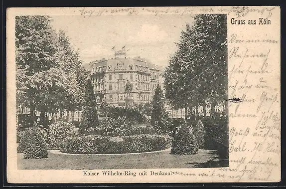 AK Köln-Neustadt, Kaiser Wilhelm-Ring mit Denkmal