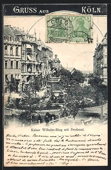 AK Köln-Neustadt, Kaiser Wilhelm-Ring mit Denkmal