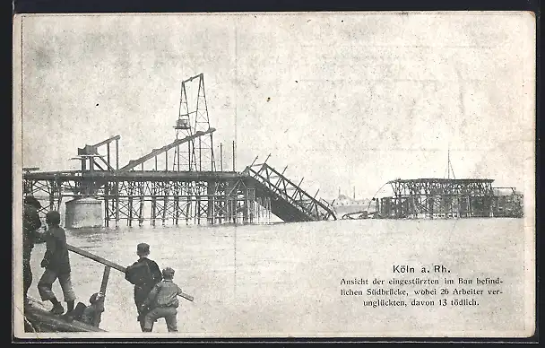 AK Köln-Neustadt, Kinder vor der eingestürzten Südbrücke