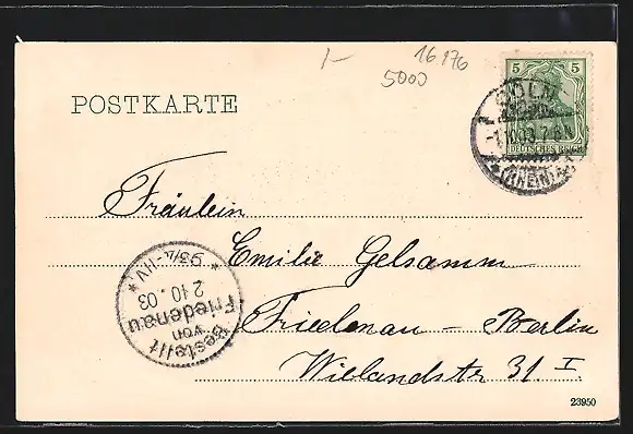 alte Ansichtskarte, gelaufen 1903, guter Zustand