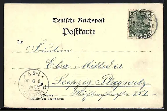 alte Ansichtskarte, gelaufen 1900, guter Zustand