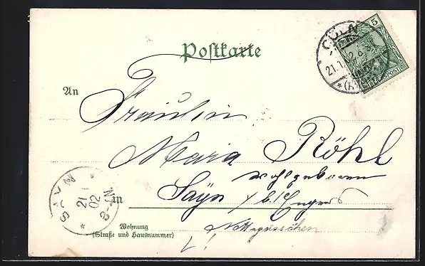 alte Ansichtskarte, gelaufen 1902, guter Zustand