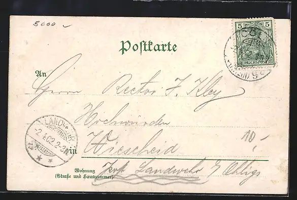 alte Ansichtskarte, gelaufen 1902, guter Zustand