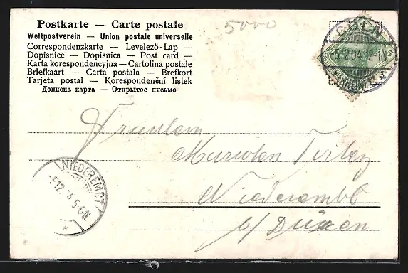 alte Ansichtskarte, gelaufen 1904, guter Zustand