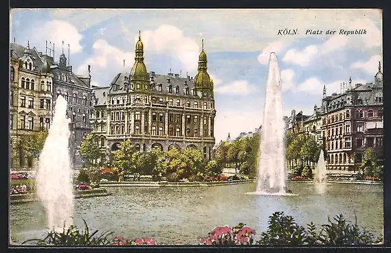 AK Köln-Neustadt, Platz der Republik mit Fontänen