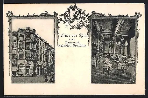 AK Köln-Neustadt, Restaurant Heinrich Spalding mit Innenansicht