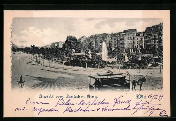 AK Köln-Neustadt, Strasse Deutscher Ring mit Pferdebahn