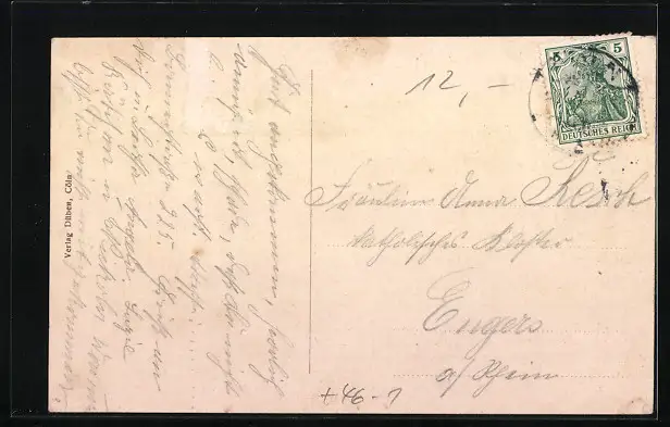 alte Ansichtskarte, gelaufen, rückseitig Oberflächenschaden, Stempelspur, Bugspur re. mittig, guter Zustand