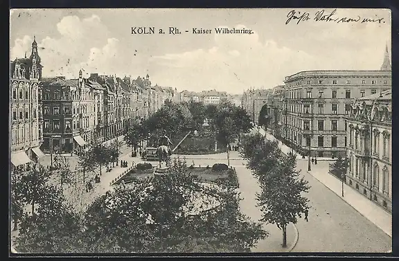 AK Köln-Neustadt, Strasse Kaiser Wilhelmring mit Denkmal