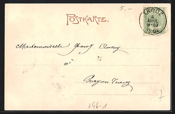 alte Ansichtskarte, gelaufen 1902, guter Zustand