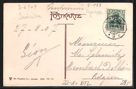 alte Ansichtskarte, gelaufen 1907, Stempelspur, guter Zustand