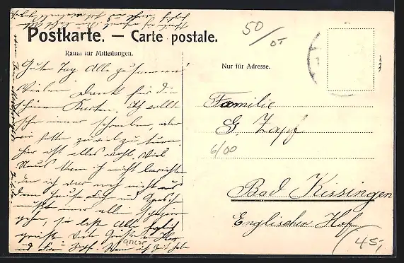 alte Ansichtskarte, gelaufen, Briefmarke entfernt, guter Zustand