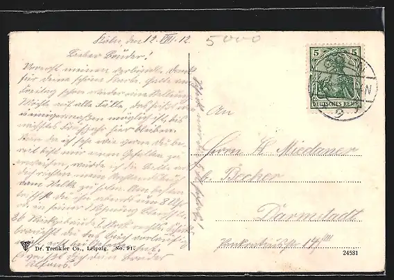 alte Ansichtskarte, gelaufen 1912, Stempelspur, Eckknick oben li., guter Zustand