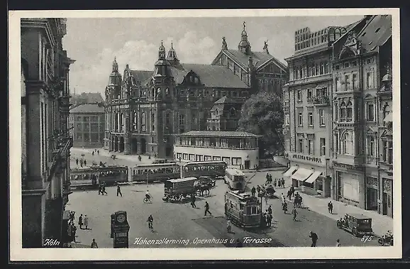 AK Köln, Opernhaus u. -Terrasse, Strassenbahn am Hohenzollernring