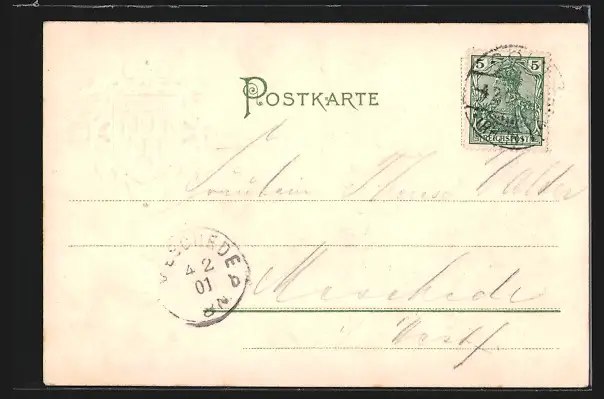 alte Ansichtskarte, gelaufen 1901, Bugspur re. mittig, guter Zustand