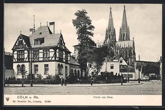 AK Köln, Partie am Dom, Strasse am Kaiser-Friedrich-Ufer