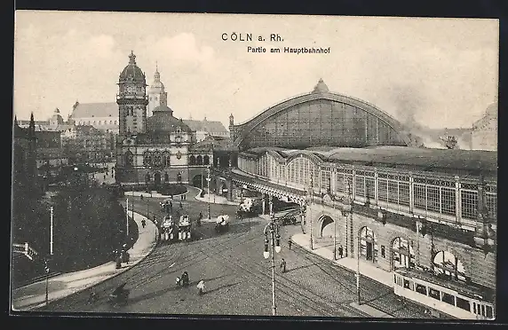 AK Köln, Partie am Hauptbahnhof, Strassenbahn, Leute