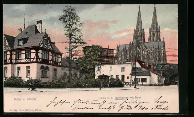 AK Köln, Partie an der Trankgasse mit Dom