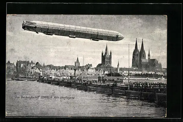 AK Köln, Reichsluftschiff Zeppelin, die Stadt überfliegend