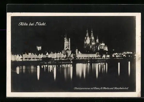 AK Köln, Rheinpanorama mit Dom, St. Martin und Hauptbahnhof