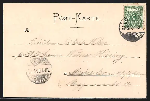 alte Ansichtskarte, gelaufen 1899, Eckknick li. oben, guter Zustand