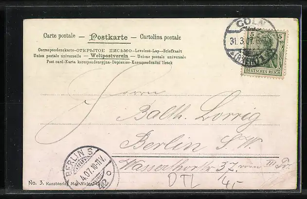 alte Ansichtskarte, gelaufen 1907, Eckknick unten li., guter Zustand