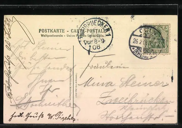 alte Ansichtskarte, gelaufen 1906, Stempelspur, guter Zustand