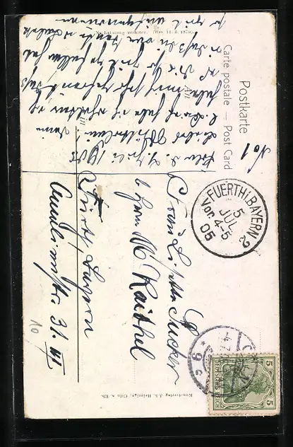 gelaufen 1905, Einriss oben mittig, guter Zustand