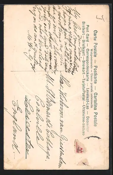 alte Ansichtskarte, gelaufen, Briefmarke entfernt, rückseitig Oberflächenschaden, Eckknick re. oben, Bugspuren li. oben und unten mittig, guter Zustand