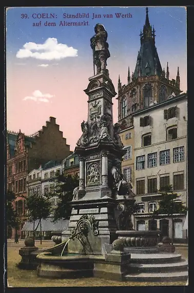 AK Köln, Standbild Jan van Werth auf dem Altermarkt