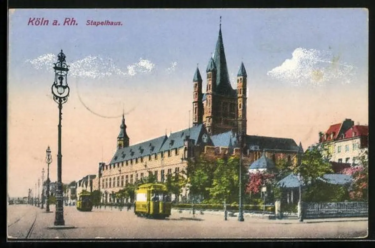 AK Köln, Stapelhaus mit zwei Strassenbahnen
