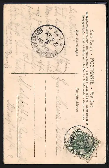 alte Ansichtskarte, gelaufen 1906, guter Zustand