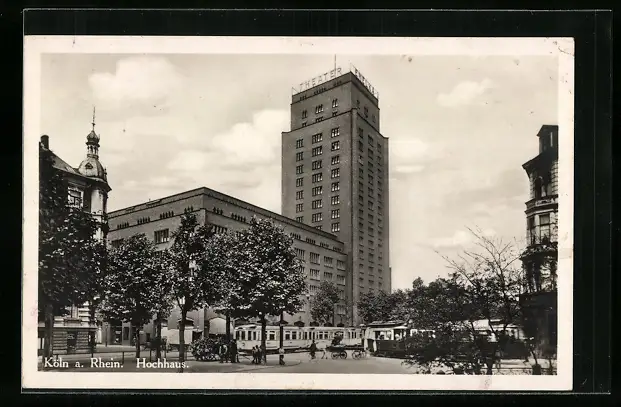 AK Köln, Strassenbahn am Hochhaus