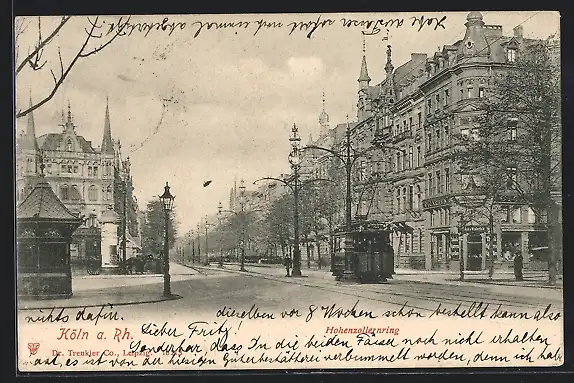 AK Köln, Strassenbahn auf dem Hohenzollernring, Litfasssäule, Pferdekutsche