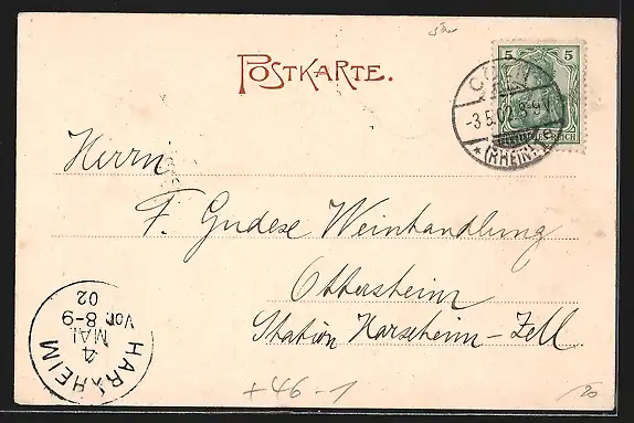 alte Ansichtskarte, gelaufen 1902, Stempelspur, guter Zustand
