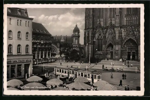 AK Köln, Strassenbahn fährt am Domplatz vorbei
